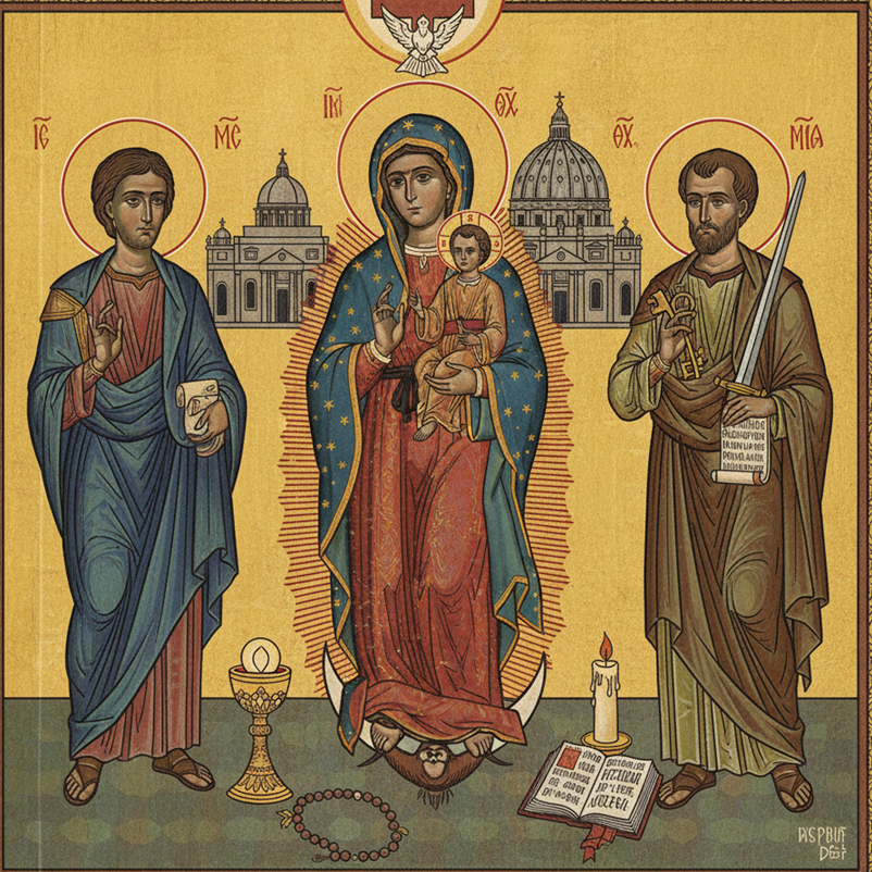 Ikon adalah alat yang vital untuk devosi, katekese, dan pemeliharaan tradisi yang diwariskan dari para Rasul. Ikonografi, seperti penggambaran Santo Petrus dengan Kunci, berfungsi sebagai pernyataan teologis yang padat mengenai otoritas gerejawi. Melalui bahasa visual yang kaya, ikon memastikan bahwa wahyu Allah yang penuh dan definitif tetap dapat diakses, dihormati, dan diwariskan dari generasi ke generasi umat beriman.