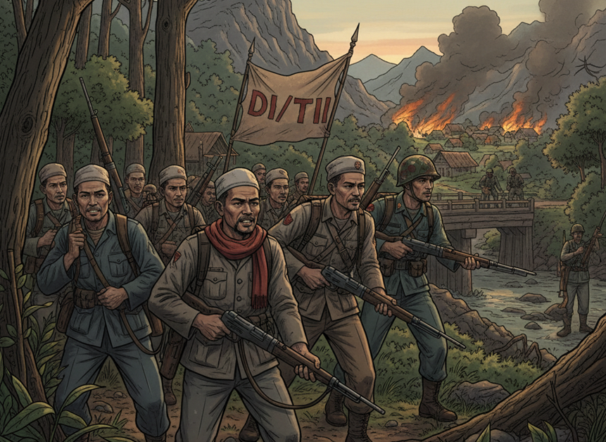 Pemberontakan Darul Islam (DI), dengan sayap militernya yang dikenal sebagai Tentara Islam Indonesia (TII), merupakan konflik internal paling signifikan yang dihadapi Republik Indonesia (RI) pada masa-masa awal konsolidasi kemerdekaan. Konflik ini secara formal dimulai dengan proklamasi Negara Islam Indonesia (NII) pada tanggal 7 Agustus 1949 oleh Sekarmadji Maridjan Kartosoewirjo, hanya berselang beberapa tahun setelah Proklamasi Kemerdekaan Indonesia 1945. Gerakan ini berakar dari sebuah desa kecil di Tasikmalaya, Jawa Barat, dan segera menyebar ke beberapa wilayah penting lainnya, menjadikannya ancaman eksistensial pertama terhadap ideologi Negara Kesatuan Republik Indonesia (NKRI) yang berdasarkan Pancasila.