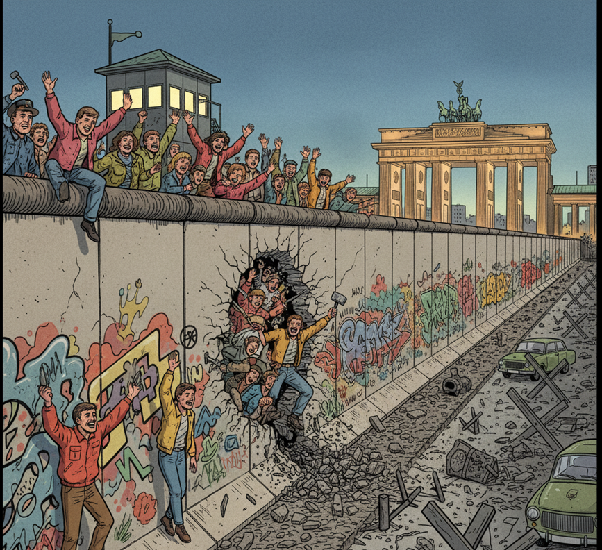 - Transformasi Nasional: Keruntuhan Tembok menyebabkan reunifikasi Jerman, tetapi juga membebani negara tersebut dengan biaya Aufbau Ost sebesar 2 triliun Euro untuk mengatasi kerusakan struktural yang ditinggalkan oleh 40 tahun Komunisme. Beban ekonomi ini menciptakan warisan pajak solidaritas dan kesenjangan sosial yang masih menjadi tantangan politik utama di Jerman hingga kini.
