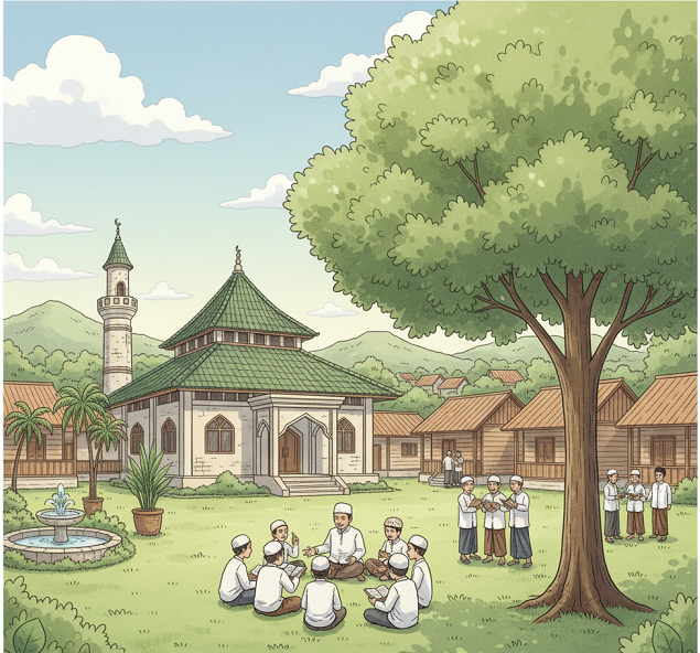 Bandongan (Wetonan) | Kyai membacakan dan menerjemahkan kitab kepada kelompok besar. | Efisiensi transfer teks dan terjemahan secara massal. | Santri baru dan tingkat menengah. |