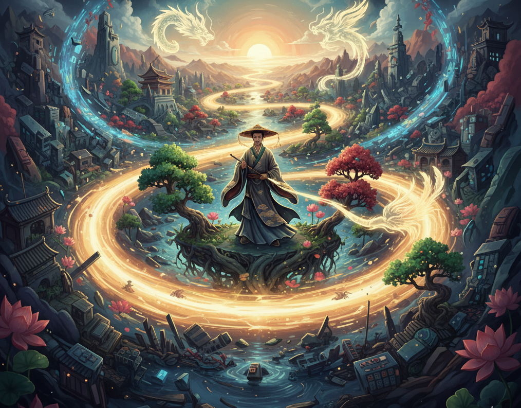 Kearifan Timur bukanlah substitusi total bagi kemajuan modern, melainkan sebuah korektif esensial. Dengan mengadopsi prinsip mizan (keseimbangan), dunia modern dapat menjembatani jurang yang diciptakan oleh Humanisme Antroposentris—jurang antara manusia dan alam, dan antara individu dan komunitas. Sintesis antara teknologi maju (Society 5.0) dan etika holistik (Dharma, Khalifah, Ren) akan mengarahkan peradaban global menuju masa depan yang sejati, di mana kemajuan tidak hanya diukur dari efisiensi dan pertumbuhan, tetapi dari keadilan, keharmonisan, dan keberlanjutan.