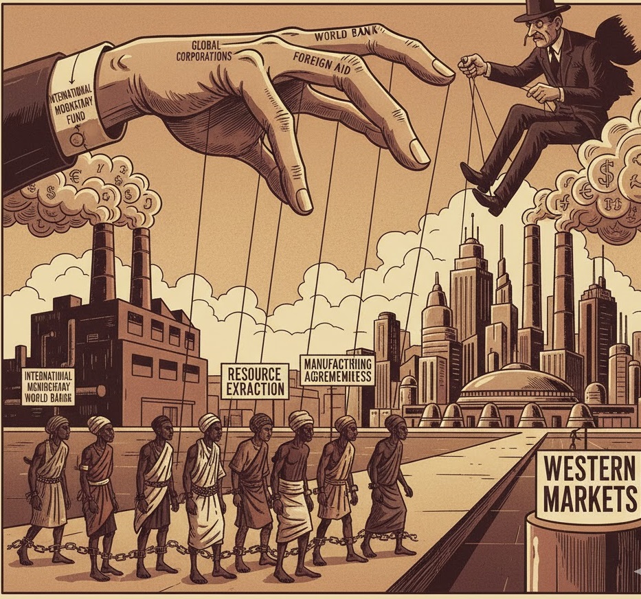Neo-kolonialisme, dengan demikian, dipahami bukan semata-mata sebagai penindasan dari luar, tetapi sebagai sistem yang secara aktif memanfaatkan kelemahan struktural internal, termasuk birokrasi lemah, defisit fiskal, dan korupsi elit domestik, yang sering kali dikooptasi untuk kepentingan kelas komprador domestik.