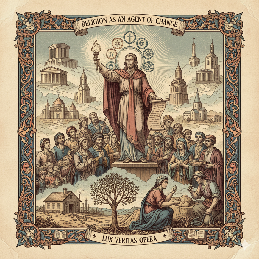 Salah satu analisis sosiologis paling berpengaruh mengenai peran agama sebagai agen perubahan struktural adalah tesis Max Weber tentang Etika Protestan dan Semangat Kapitalisme. Weber berpendapat bahwa doktrin-doktrin tertentu dalam Protestantisme, khususnya Calvinisme, secara tidak sengaja menciptakan etos kerja yang disiplin dan rasional, yang sangat kondusif bagi akumulasi modal dan perkembangan kapitalisme modern.