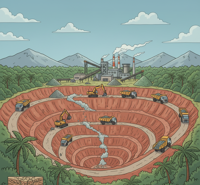 Di balik pendapatan sektor ekstraktif, terdapat kerugian lingkungan dan sosial yang signifikan. Aktivitas pertambangan, terutama proyek-proyek raksasa mineral transisi seperti nikel, seringkali memunculkan dampak negatif berupa kerusakan lingkungan, masalah iklim, dan konflik sosial yang parah, bahkan tuduhan pelanggaran HAM. Kritik menyebut bahwa pendanaan tambang mineral transisi justru merusak lingkungan, dan upaya hilirisasi kadang disebut sebagai “penaklukan alam berkedok transisi energi”.