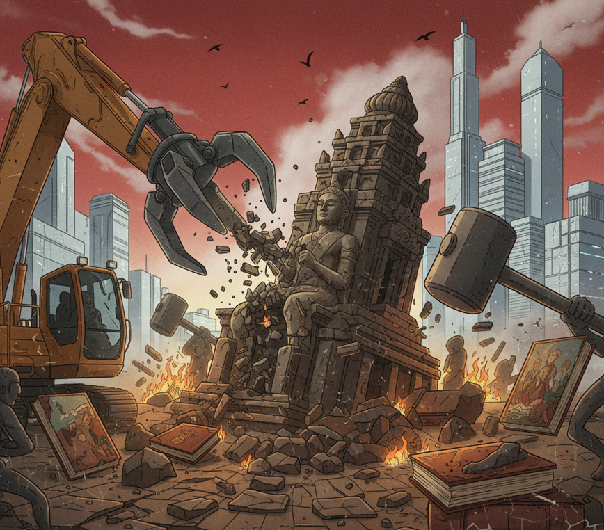Penghancuran warisan budaya merupakan kejahatan perang global yang secara fundamental ditujukan untuk menghapus ingatan dan identitas peradaban suatu kelompok. Hukum Humaniter Internasional telah menetapkan kerangka normatif yang kuat, terutama melalui Konvensi Den Haag 1954 dan Statuta Roma ICC, yang mengkriminalisasi tindakan ini secara individual melalui Pasal 8(2)(e)(iv).