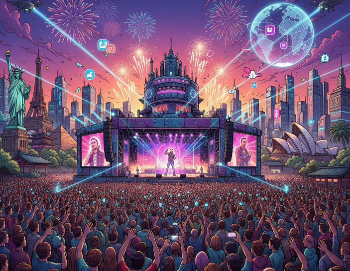 Evolusi terbaru dalam dekade terakhir telah menggeser fokus dari festival lokal menuju tur musisi internasional yang terintegrasi, yang kini berfungsi sebagai mesin pendorong permintaan ekonomi regional. Tur berskala masif seperti The Eras Tour oleh Taylor Swift dan Music of the Spheres World Tour oleh Coldplay adalah contoh menonjol yang mentransformasi wisata musik menjadi kejutan permintaan (demand shock) yang terukur pada tingkat makroekonomi.