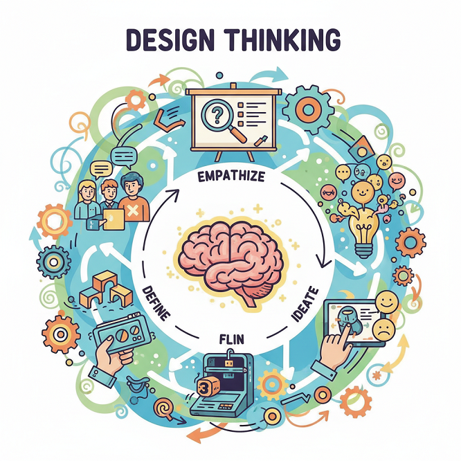 Design Thinking didefinisikan sebagai metodologi berpusat pada solusi dan berpusat pada manusia (people-centered). Pendekatan ini secara eksplisit bertujuan untuk menggabungkan tiga komponen utama dalam satu kerangka kerja: empati (pemahaman mendalam terhadap pengguna), logika (analisis data), dan kreativitas (penciptaan solusi baru).