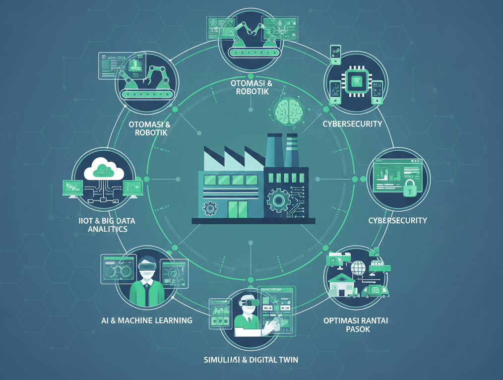 Konsep Digital Twin (DT) dan Sistem Siber-Fisik (CPS) semakin penting. DT adalah replika virtual dinamis dari aset, proses, atau seluruh fasilitas fisik. DT memungkinkan manajer untuk mensimulasikan alur kerja produksi, mengoptimalkan tata letak peralatan, dan bahkan merakit jalur produksi secara virtual sebelum penerapan fisik. Ini meminimalkan proses trial-and-error yang mahal dan berisiko. Misalnya, Foxconn memanfaatkan platform digital twin untuk mereplikasi tata letak pabrik yang berhasil dari satu lokasi global ke lokasi lain, secara signifikan mempercepat waktu penyelesaian situs baru.