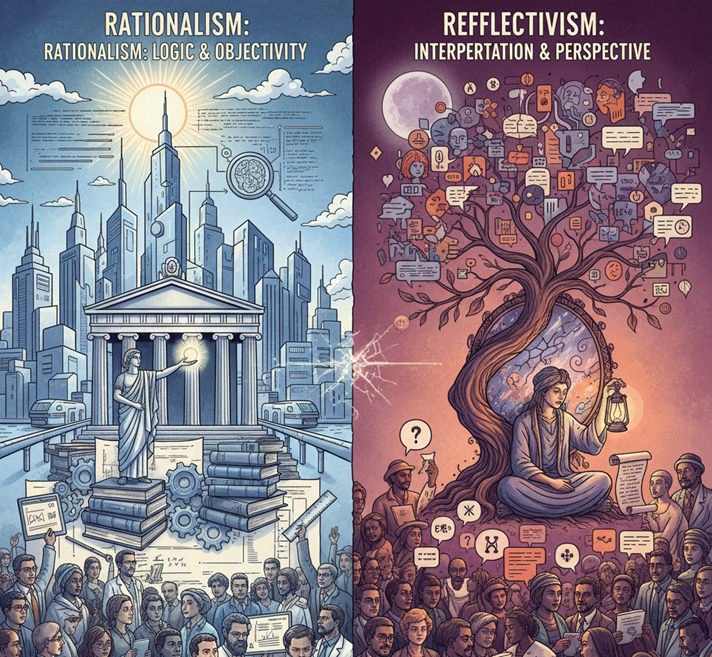 Studi Hubungan Internasional (HI) secara historis dicirikan oleh kontestasi paradigmatik yang mendalam. Pergulatan akademik utama terjadi antara kubu rasionalis-positivis dan kubu reflektivis-pospositivis, di mana titik temu antara keduanya seringkali sulit ditemukan. Perspektif rasionalis, yang mencakup Realisme dan Liberalisme, cenderung menggunakan metode ilmiah untuk menjelaskan pola perilaku negara berdasarkan asumsi ontologis yang objektif, seperti anarki dan kepentingan nasional yang bersifat given.