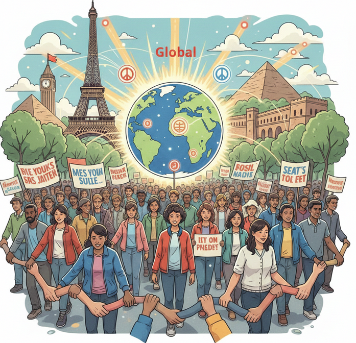 Gerakan Sosial Global (GSG) merepresentasikan evolusi aksi kolektif dari tantangan politik yang bersifat domestik menjadi fenomena transnasional yang kompleks, bertujuan untuk melakukan reorganisasi sosial, baik yang diorganisir secara rapi maupun secara cair dan informal. Sejak pertengahan abad ke-20, intensitas dan variasi gerakan yang menentang dominasi politik telah meningkat, mencakup perjuangan hak sipil (1955-1968 di AS), gerakan anti-perang, feminisme, dan lingkungan hidup. GSG kontemporer, seperti yang berfokus pada kesetaraan gender dan lingkungan, tidak hanya beroperasi di ranah politik tetapi juga di ranah kultural dan ekonomi.
