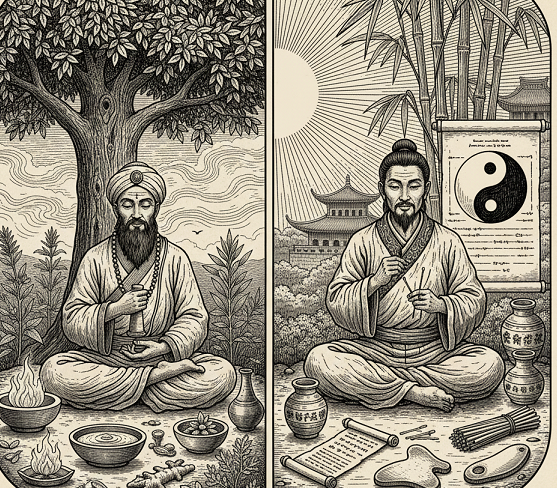 Ayurveda, yang berasal dari India kuno, dan Pengobatan Tradisional Tiongkok (TCM), yang berakar di Tiongkok, merupakan dua sistem pengobatan holistik tertua di dunia. Keduanya berbagi paradigma fundamental yang berbeda secara mendasar dari model biomedis modern. Daripada mengisolasi gejala atau menargetkan organ individual, kedua sistem ini memandang tubuh manusia sebagai ekosistem yang saling terhubung, di mana kesehatan dicapai melalui harmoni internal dan keselarasan dengan hukum alam.