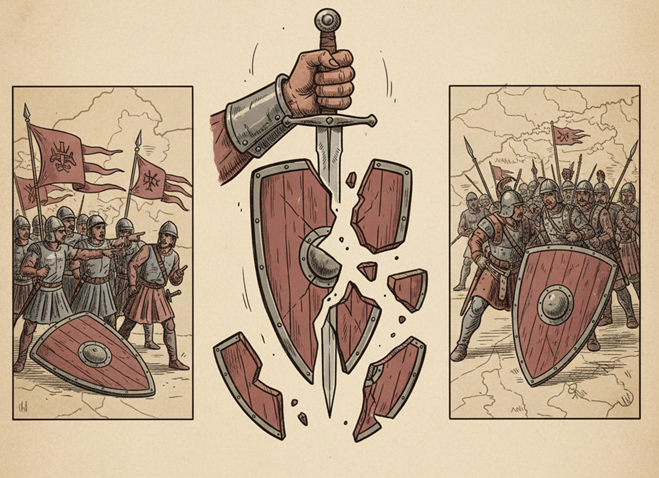 Perbedaan mendasar antara kedua kekaisaran terletak pada orientasi waktu dari strategi D&C mereka. Romawi, dengan modelnya yang berorientasi hukum, bertujuan untuk stabilitas jangka panjang melalui asimilasi progresif dan integrasi generasi. Kebijakan ini menunjukkan kesediaan untuk “mengencerkan” identitas Romawi demi mendapatkan loyalitas yang berkelanjutan dari populasi taklukan.