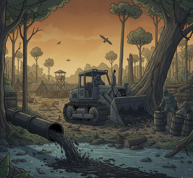 | Pertambangan Ilegal (Emas & Mineral) | 12 – 48 Miliar | Penggunaan merkuri secara masif; sering membiayai konflik bersenjata. |