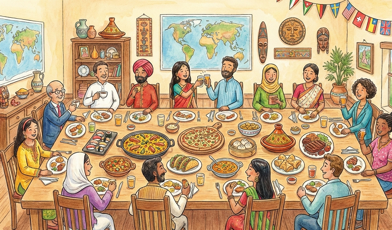 Meja makan internasional berfungsi sebagai penyeimbang yang hebat (the great equalizer). Stereotip dan prasangka seringkali muncul dari ketidaktahuan, namun saat seseorang duduk untuk berbagi hidangan dari budaya lain, mereka mulai melihat melampaui gagasan yang sudah ada sebelumnya. Menikmati hidangan Timur Tengah tradisional, misalnya, dapat menghancurkan stereotip politik yang sempit dan menggantinya dengan apresiasi terhadap warisan kuliner yang kaya dan keramah-tamahan yang tulus.