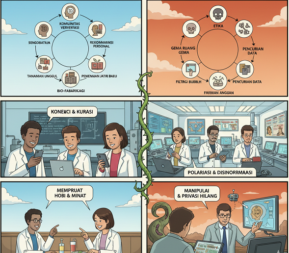 | Kurasi Personalisasi | Menyeleksi konten berdasarkan perilaku masa lalu pengguna. | Penciptaan realitas yang terfragmentasi dan terisolasi. |