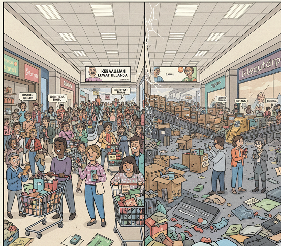 Selain itu, kemudahan teknologi seperti e-commerce dan fitur pembayaran tertunda (Paylater) semakin mempercepat pola konsumsi ini di Indonesia. Masyarakat tidak lagi merasa perlu melihat produk secara langsung; cukup dengan melihat visual di layar smartphone, transaksi dilakukan dalam hitungan detik. Hal ini menunjukkan bahwa masyarakat Indonesia telah sepenuhnya terintegrasi ke dalam budaya konsumen global, di mana keinginan sering kali mengalahkan pertimbangan kemampuan ekonomi yang nyata.