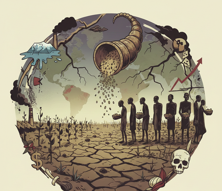 Sistem pangan global saat ini menyumbang sekitar seperempat dari seluruh polusi gas rumah kaca yang memerangkap panas. Ironisnya, sektor yang sama juga merupakan korban utama dari emisi tersebut. Krisis iklim bertindak sebagai pengganda ancaman (threat multiplier), yang memperburuk kerentanan yang sudah ada dalam sistem distribusi dan produksi pangan. Berdasarkan data dari Organisasi Pangan dan Pertanian PBB (FAO), bencana alam telah menyebabkan kerugian sektor pertanian global sebesar USD 3,26 triliun selama periode 1991–2023. Angka ini mencerminkan hilangnya nilai produksi yang sangat besar, yang berdampak langsung pada ketersediaan pangan dan stabilitas harga.