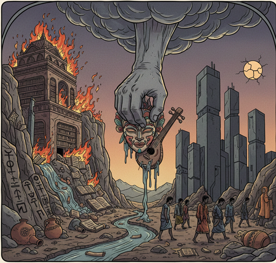 Genosida budaya di era digital bukan lagi sekadar ancaman teoritis, melainkan proses nyata yang didorong oleh hegemoni algoritma dan praktik kolonialisme data. Dominasi budaya global yang seragam secara perlahan menghapus keberagaman linguistik, mendistorsi tradisi lisan, dan memarginalkan kearifan lokal yang tidak memiliki nilai komersial dalam ekosistem FilterWorld. Di wilayah seperti Sumatera Utara, pergeseran bahasa dan nilai budaya pada generasi muda menunjukkan betapa mendesaknya intervensi strategis untuk melindungi identitas nasional.