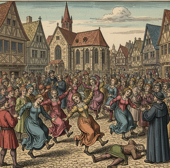 Strasbourg 1518 adalah kasus yang paling terdokumentasi, tetapi bukan satu-satunya dalam sejarah Eropa. Fenomena serupa telah terjadi secara berkala antara abad ke-11 dan ke-17, terutama di sepanjang sungai Rhine dan Moselle.