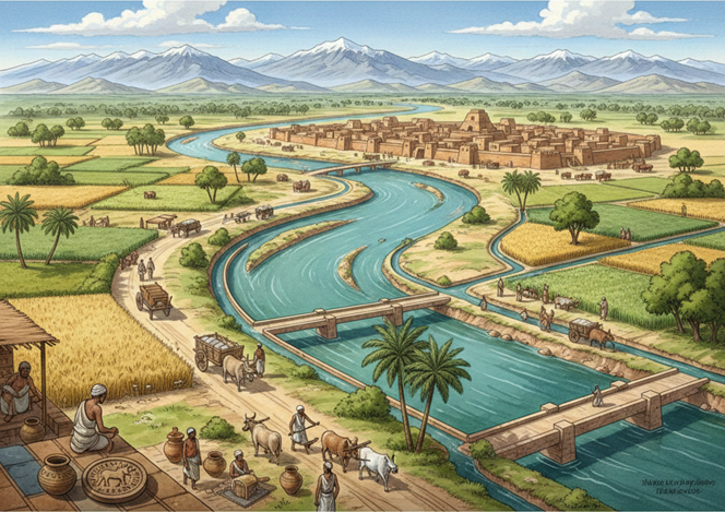 Dalam catatan tertulis dari peradaban Mesopotamia, khususnya pada masa kekuasaan Sargon dari Akkad sekitar tahun 2334-2279 SM, terdapat referensi berulang mengenai sebuah wilayah makmur yang disebut “Meluhha”. Hampir semua ahli sejarah modern sepakat bahwa Meluhha adalah nama yang diberikan oleh orang-orang Sumeria dan Akkadia untuk merujuk pada Peradaban Lembah Indus. Hubungan antara Meluhha dan Mesopotamia bukan sekadar pertukaran barang sesekali, melainkan sebuah jaringan perdagangan laut dan darat yang terorganisir dengan sangat baik.