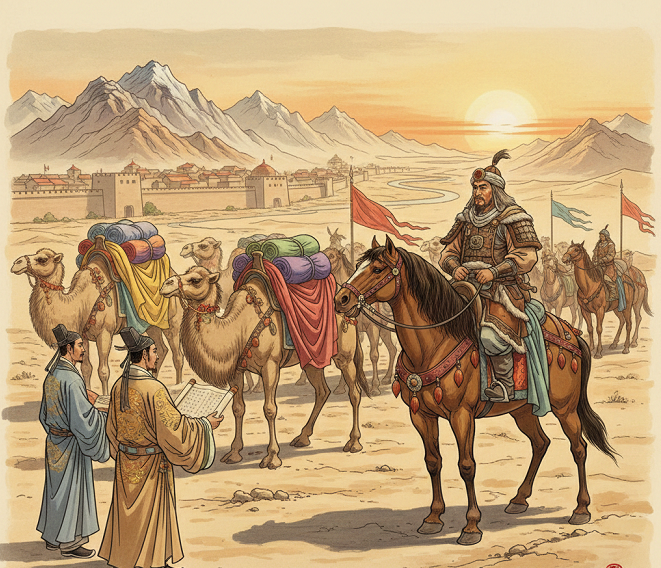 Evolusi hubungan antara kekaisaran Tiongkok kuno dan konfederasi nomaden di perbatasan utara merupakan salah satu dinamika geopolitik paling kompleks dalam sejarah Eurasia. Hubungan ini tidak hanya didorong oleh kekuatan militer, tetapi juga oleh orkestrasi canggih yang melibatkan komoditas ekonomi, aliansi pernikahan, dan pengakuan diplomatik yang setara. Fenomena yang dikenal sebagai “Diplomasi Sutra dan Kuda” ini merepresentasikan sebuah sistem barter keamanan di mana kemewahan material, khususnya sutra, digunakan sebagai instrumen untuk menstabilkan perbatasan yang rawan konflik. Melalui kebijakan Heqin (和親) atau “Perdamaian yang Harmonis”, Dinasti Han memulai sebuah eksperimen diplomatik yang panjang, di mana putri-putri kekaisaran dikirim ke wilayah utara untuk dinikahkan dengan pemimpin nomaden, disertai dengan pasokan barang-barang mewah dalam jumlah besar. Strategi ini bukan sekadar tindakan keputusasaan, melainkan sebuah bentuk realpolitik yang bertujuan untuk mengintegrasikan musuh ke dalam kerangka relasi kekeluargaan Konfusianisme, sekaligus menciptakan ketergantungan ekonomi yang pada akhirnya melahirkan jaringan perdagangan transkontinental yang kini dikenal sebagai Jalur Sutra.