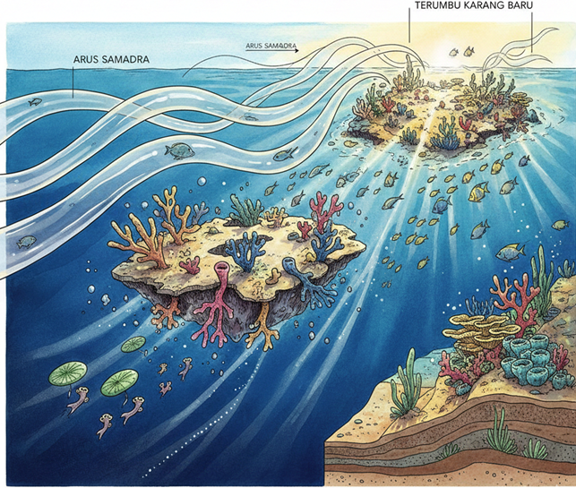 | Latitudo Tinggi | Suhu air lebih dingin dibandingkan tropis; ruang baru untuk kolonisasi. | Cahaya rendah; kalsifikasi lambat; kompetisi dengan makroalga. | |