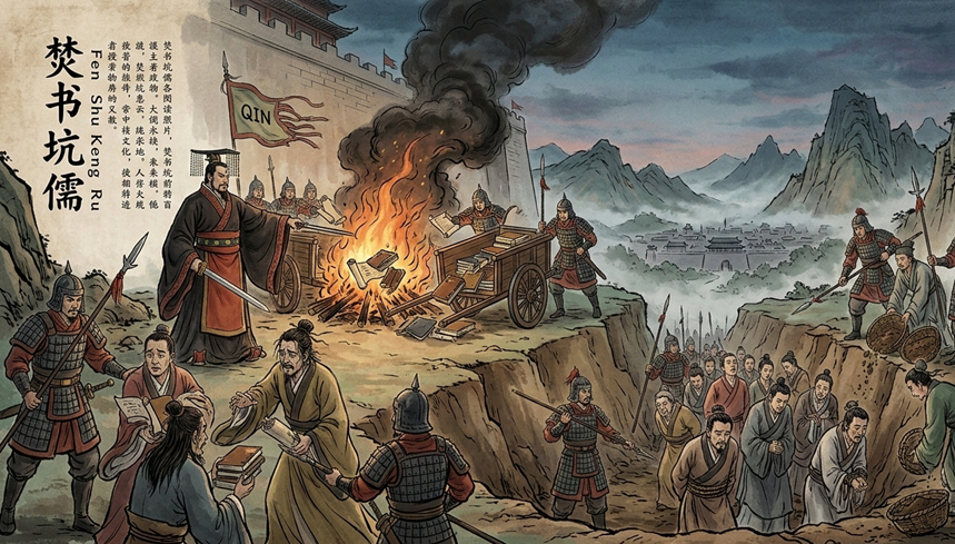 Transformasi Tiongkok dari konfederasi negara-negara feodal yang berseteru menjadi kekaisaran tersentralisasi pada tahun 221 SM merupakan salah satu titik balik paling dramatis dalam sejarah manusia. Di jantung transformasi ini terdapat kebijakan Fen Shu Keng Ru (Membakar Buku dan Mengubur Cendekiawan), sebuah manuver politik radikal yang dirancang untuk menghapus keragaman intelektual demi kesatuan ideologis di bawah panji Legalisme. Kebijakan ini bukan sekadar tindakan vandalisme budaya yang impulsif, melainkan instrumen tata kelola negara yang sangat terstruktur, yang dipromosikan oleh Perdana Menteri Li Si untuk memastikan bahwa otoritas Kaisar Pertama, Qin Shi Huang, tidak tertandingi oleh kritik berbasis sejarah atau moralitas tradisional. Melalui analisis mendalam terhadap memoar politik, catatan historiografi Han, dan penemuan arkeologis modern, laporan ini akan membedah anatomi penyensoran ini, dampaknya terhadap transmisi teks klasik, serta perdebatan panjang mengenai keaslian detail peristiwa tersebut dalam sejarah Tiongkok.