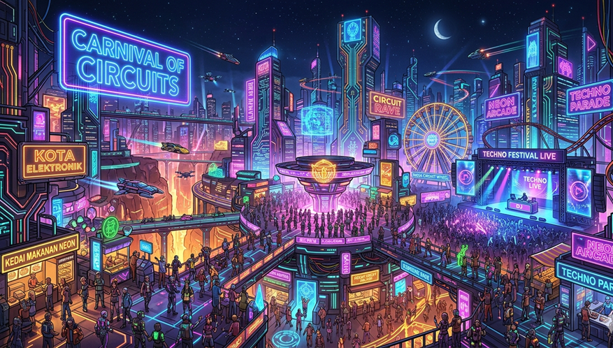 Carnival of Circuits berdiri sebagai monumen bagi ambisi manusia untuk menyelaraskan ritme budaya dengan kebutuhan ekologis. Kota ini membuktikan bahwa energi kinetik dari aktivitas sehari-hari—tarian, parade, dan langkah kaki—dapat diubah menjadi daya yang menghidupkan infrastruktur modern, mulai dari lampu jalan hingga pabrik industri. Melalui arsitektur Neo-Tropicália yang biofilik dan integrasi Afrofuturisme yang dinamis, kota ini menciptakan ruang urban yang estetik dan fungsional secara metabolik.