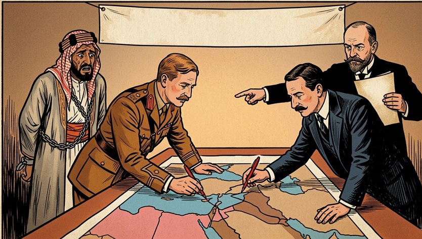 Konfigurasi geopolitik Timur Tengah kontemporer sering kali dipandang sebagai produk dari permusuhan kuno yang tak terelakkan, namun analisis historis yang lebih mendalam menunjukkan bahwa banyak dari konflik tersebut berakar pada satu titik balik diplomatik di tengah Perang Dunia I. Perjanjian Sykes-Picot tahun 1916 bukan sekadar dokumen administratif; ia adalah manifestasi dari arogansi kolonial yang menggambar ulang peta dunia di atas meja-meja mahoni di London, sementara ribuan mil jauhnya, di gurun yang membara, sebuah bangsa sedang menumpahkan darah demi janji kebebasan yang ternyata palsu. Perjanjian rahasia ini, yang dirancang oleh Sir Mark Sykes dari Inggris dan François Georges-Picot dari Prancis, mewakili pengkhianatan diplomatik terbesar yang dampaknya masih dirasakan dalam setiap letusan kekerasan di Irak, Suriah, hingga Palestina di abad ke-21.